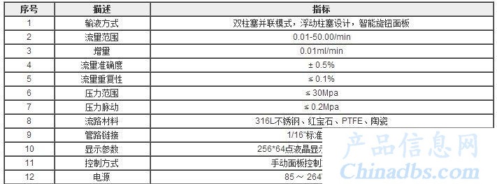 FLASH0530 高压高精度双柱塞输液泵(50ml泵头30Mpa)技术参数: